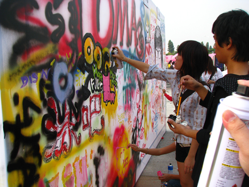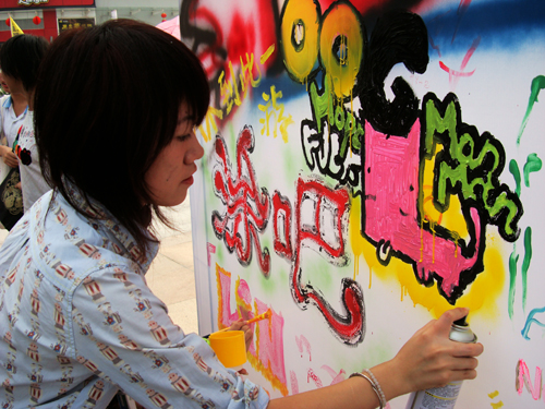 在颁奖当天,我院艺术设计系有部分学生来到了大学城北亭广场参加了活动。在颁奖典礼开始之前,艺术设计系学生参与了当场的涂鸦活动,同学们的参与热情比较高,纷纷在涂鸦布上留下自己的“青春记忆”。他们用喷漆绘出“精彩人生”,展现了我院学生良好的精神风貌。