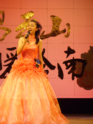 比赛最后,自05级音乐表演系2班的学生邓小敏,用一曲《亲吻祖国》赢得了评委的青睐获得了专业组金奖。