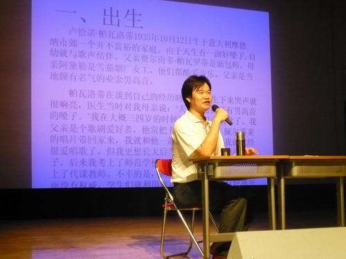 10月14日晚7:30分在艺术学院二楼小剧场举行了一场名为“世界第一男高音帕瓦罗蒂”的讲座,主讲老师为艺术学院音乐表演系主任杨健生副教授。