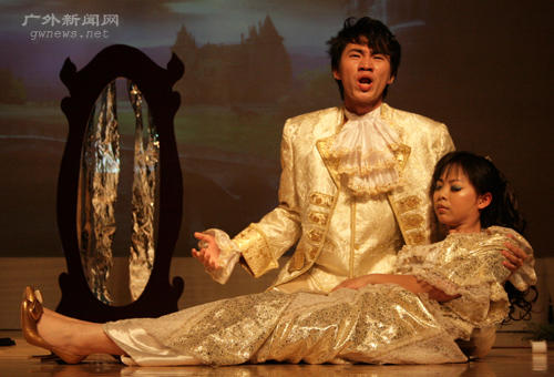 这场由07级艺术设计系与音乐表演系联手演绎的《魔法奇缘》开场就以美妙的歌声将观众带入纯真的童话世界,欢快的歌唱与轻巧的动作使观众沉浸在公主与王子艾德华相恋的甜蜜与温馨中。随后,紧凑又有创意的剧情也赢得了观众频频鼓掌和阵阵笑声。