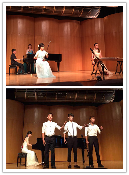 刘湘老师低年级的三位学生吕梓翰、王国熙、李世发也来到音乐会上客串表演,男生三重唱《达坂城姑娘》,诙谐的表演,欢快节奏,将少数民族的欢快与奔放演绎得淋漓尽致。多才多艺的毕业生吴雨辰和莫嘉怡为大家献上的民乐合奏《卷珠帘》,让现场观众眼前一亮。