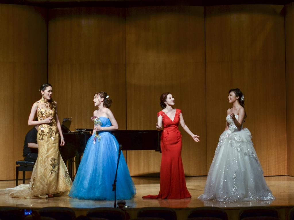 音乐会上,吴雨辰、文逸、莫嘉怡三位毕业生先后进行汇报演出。吴雨晨同学演唱了《洪湖水浪打浪》、《大宅门》、《知己红颜》三首家喻户晓的经典作品,歌声干净明亮,情感细致动人;文逸带来的《紫罗兰》、《故乡》、《红土香》等曲目,声音结实有力,演绎深情动人;莫嘉怡演唱了三首民族风格浓郁的曲目《紫菱洲歌》、《塔里木》、《文成公主》,歌声优美婉转,旋律跌宕起伏。精彩的表演深深打动了现场观众,掌声此起彼伏。