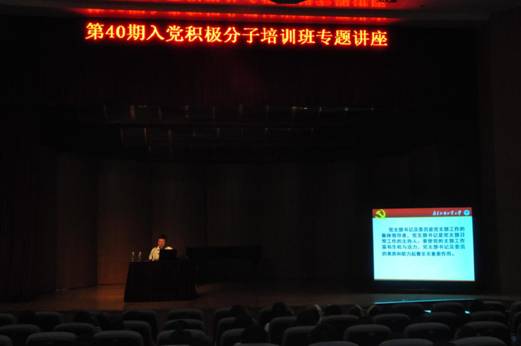 6月11日星期四下午,第40期入党积极分子培训班专题报告在艺术楼小剧场正式开课。学校特邀党建组织员蒙德红老师为教育、信息和艺术学院的入党积极分子作了主题为“党支部委员的职责和发展党员工作”的专题讲座。
