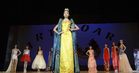 古典的中国不仅拥有音乐,还有传统华美的服饰。伴着音乐,一个个身材高挑的女模特身着由艺术设计的同学自己设计制作的华丽服饰从字画后出现,配着优美的旋律、柔美的灯光,正如节目名《绝代风华》一样,高贵典雅,妩媚动人。