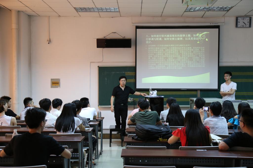 6月12日下午2点半,我院钢琴教师蔡常青应武汉音乐学院邀请,在黄鹤楼下长江之滨美丽的武汉音乐学院滨江校区教学楼A405阶梯大教室举办了题为《钢琴即兴弹唱、伴奏与演奏》的学术讲座。