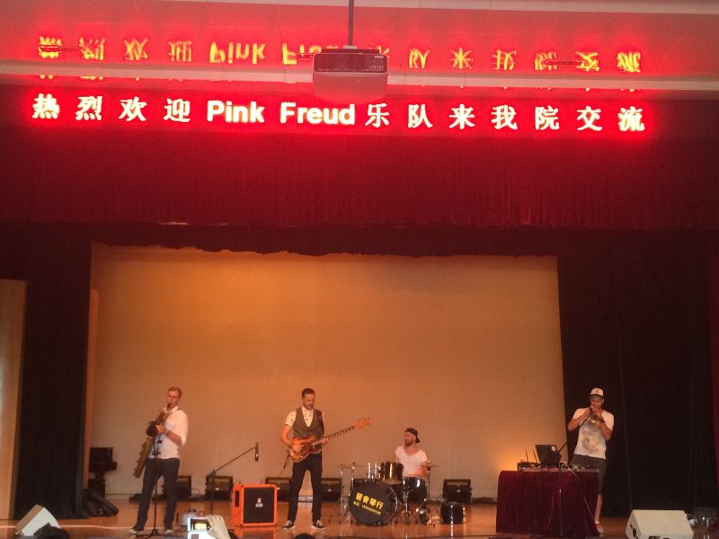 Pink Freud是当代爵士甚至更多音乐风格领域中最具独创性的乐队之一。在波兰大使的介绍下,乐队在开场就直接以音乐的形式问候大家,暗含蓝调忧伤的爵士风格夺得艺院学子掌声阵阵。他们的音乐打破传统音乐的限制,用古典乐器结合最新的电子音乐设备,从朋克,摇滚到druss and bass,然后到丛林,dub,再到实验和电子,串联起各种音乐风格。