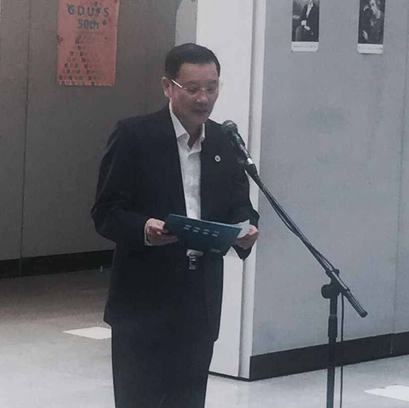方凡泉首先代表学校致辞,对蔡大经一行表示热烈欢迎。他说此次双方合作成立研究中心等标志着艺术学院在校企合作上又迈出了新的步伐,是学校创新人才培养模式、增强服务地方经济发展能力的有效途径,指出“利玛窦文化艺术研究中心的成立可以更好地利用我们双方资源,助推‘一带一路’文化建设;溯源艺术交易平台的建立将带来艺术品交易市场的变革;艺术学院文化景观石的落成为大学的校园文化建设增加了一道靓丽的风景,在南北校园里以端砚石材雕凿的文化景观,这是第一个,感谢肇庆市慷慨捐赠这样一块有灵性的石头!”