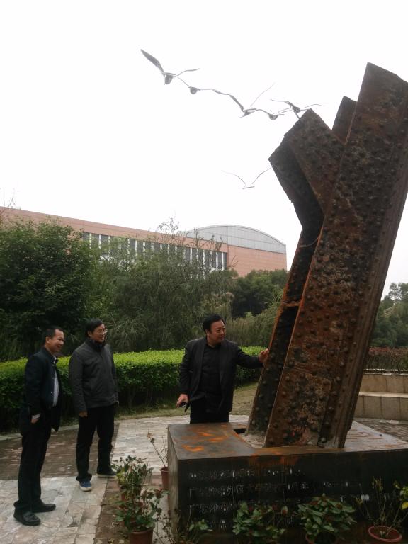 讲座前,张夫也在李于昆等陪同下,参观了我院户外景观雕塑“飞翔”,对于景观雕塑主题材料采用来自法国埃菲尔铁桥拆卸下来的构件进行再设计的思路和造型,张教授给予了赞赏并现场拍照予以作为以后的讲座素材。