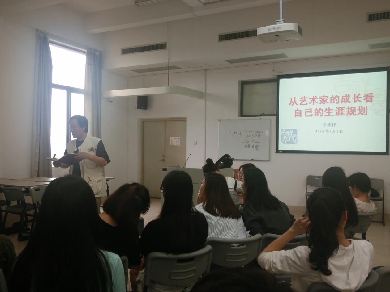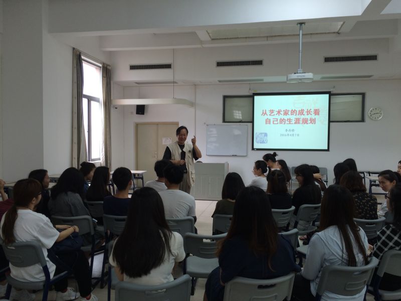 2016年4月7号下午14:30,广东省旅游文化协会会长李存修与我院师生畅谈“从艺术家的成长看自己的生涯规划”。艺术学院党总支副书记张莉、团委书记邓煜及大一至大三的设计、音乐表演专业的同学参与交流。