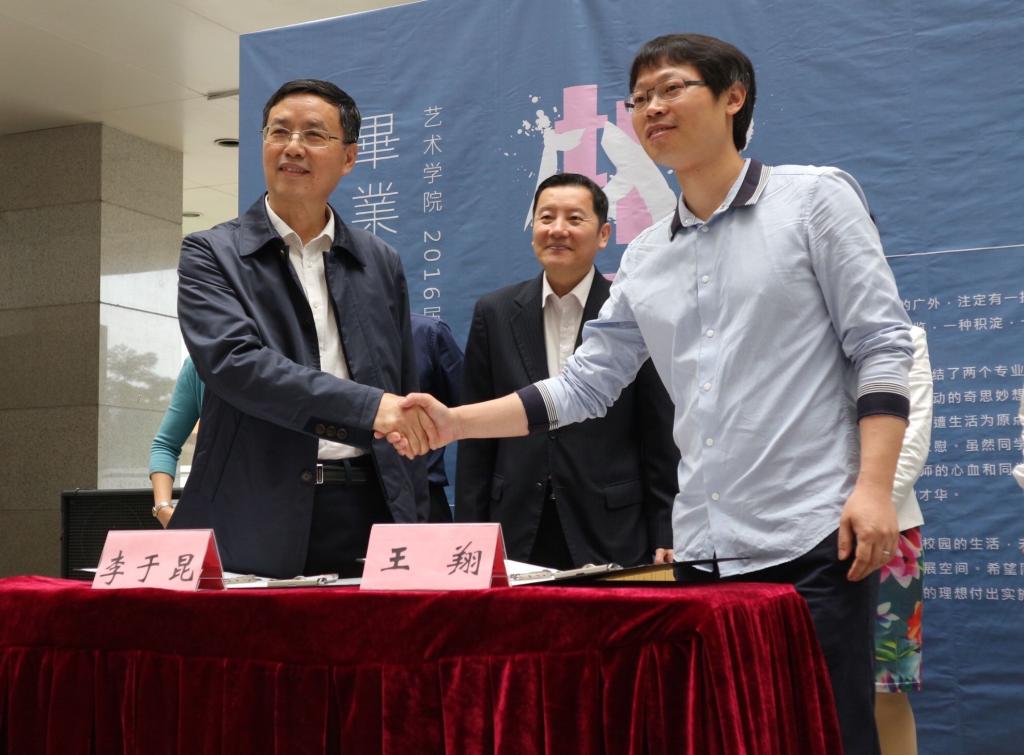 艺术学院致力于将完全学分制与项目实践教学纳入专业建设范畴。学院与云图动漫设计公司就共同建设校外实践基地和创新创业训练基地在开幕式上正式签署合作协议。王翔表示,未来双方将本着“优势互补,资源共享,互惠双赢,共同发展”的原则,以校企合作为纽带,深入开发各种合作项目,开拓合作领域,加强相互了解,建立深层次的合作关系,以保证实践教学能够顺利、稳定地开展。随后,合作双方负责人签署协议,李于昆、朱珍葶分别为云图动漫公司颁授实习基地及创业创新训练基地牌匾。
