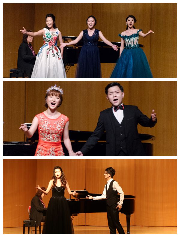 本场音乐会形式多样,精彩不断。除了独唱重唱以外,还有对唱、合唱以及钢琴独奏。同学们在本场优秀毕业生音乐会上倾情演出,邓冉、钟明、张宇晴分别演绎了外国歌剧咏叹调《噢!我的费尔南多!》,《咱俩都一样》、《我听到美妙的歌声》的女中音、男中音、女高音声部的代表作。虽然三首作品难度都较高,但三位同学通过精湛的歌唱技巧,完美刻画了歌剧人物的性格和情感,赢得了观众雷鸣般的掌声。