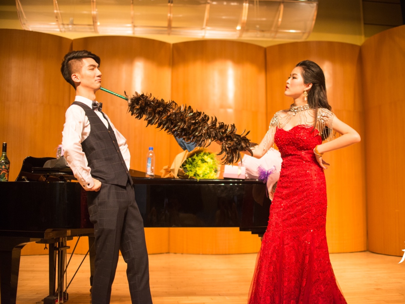 5月31日晚7:30,广东外语外贸大学艺术学院音乐系2016系列活动之――钟明&黄颖莉毕业音乐会在艺术学院小剧场举行。艺术学院党总支书记朱珍葶、副院长罗金燕、李志刚,副书记张莉,江苏省高新技术企业海兹思纳米技术有限公司董事长熊启红,以及艺术学院部分教师和同学出席了音乐会,共同欣赏了这场视听盛宴并给予音乐会较高的评价。艺术学院2012届的优秀毕业生杨超担任音乐会主持。