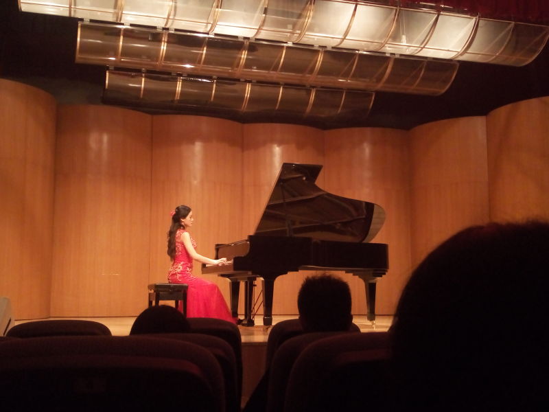 音乐会的开始以具有“键盘上的旧约圣经”之称的巴赫《十二平均律》B大调前奏曲与赋格作为开场曲,富有田园气息的赋格将大家安安静静的带入音乐的世界。接着一整套的莫扎特D大调奏鸣曲展现出师姐对音乐的细腻情感。这场音乐会总共八首曲目,曲子包含音乐史上各个时期,其中拉威尔的《水的嬉戏》,将河神戏水时的场景和涓涓溪流及瀑布一泻而下的画面演奏的淋淋尽致,使大家身临其境。