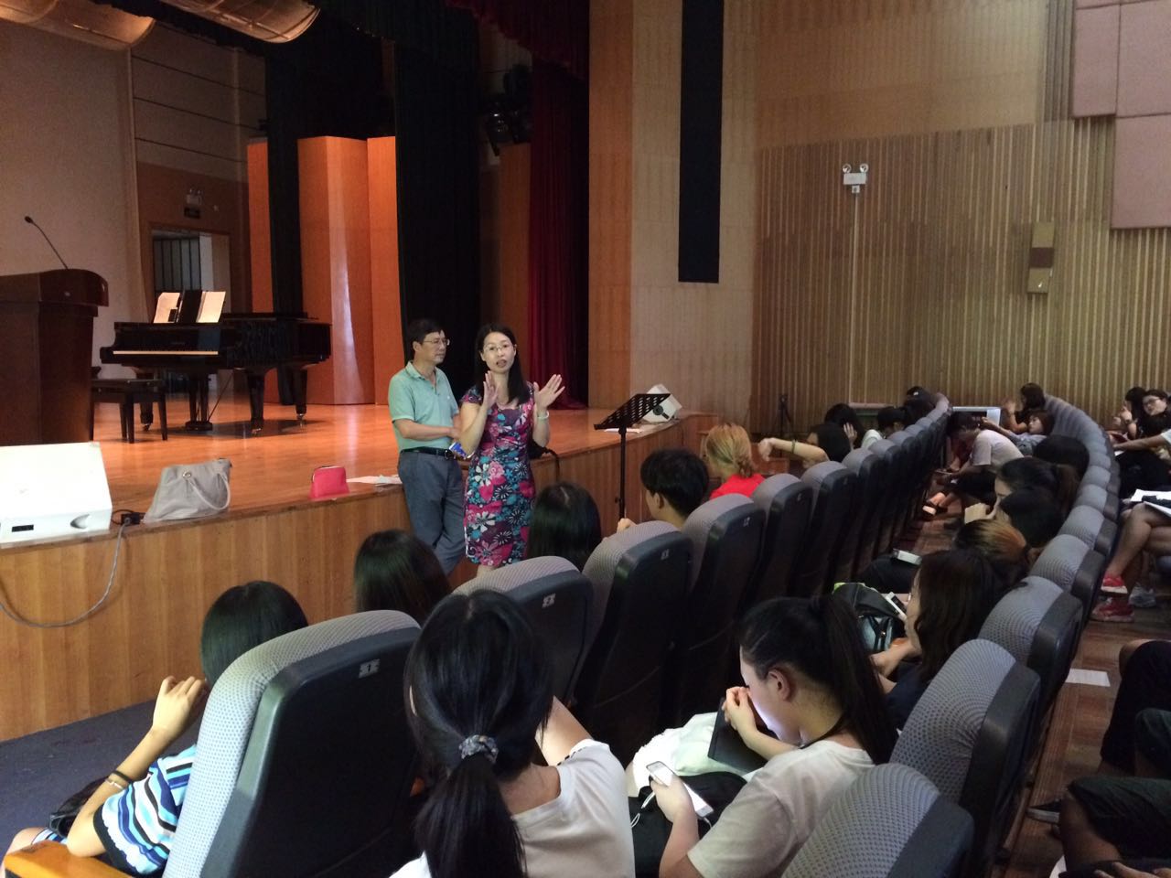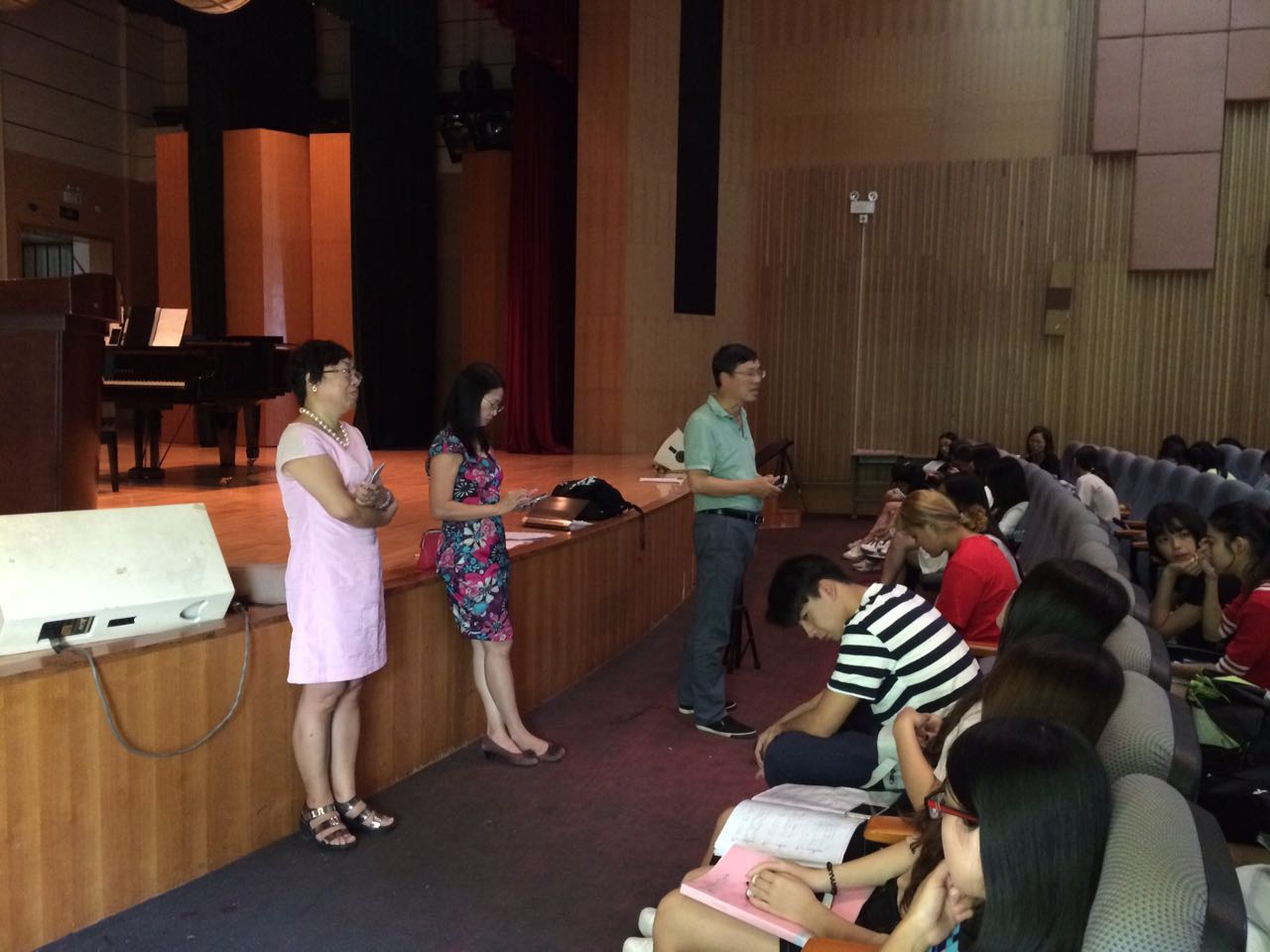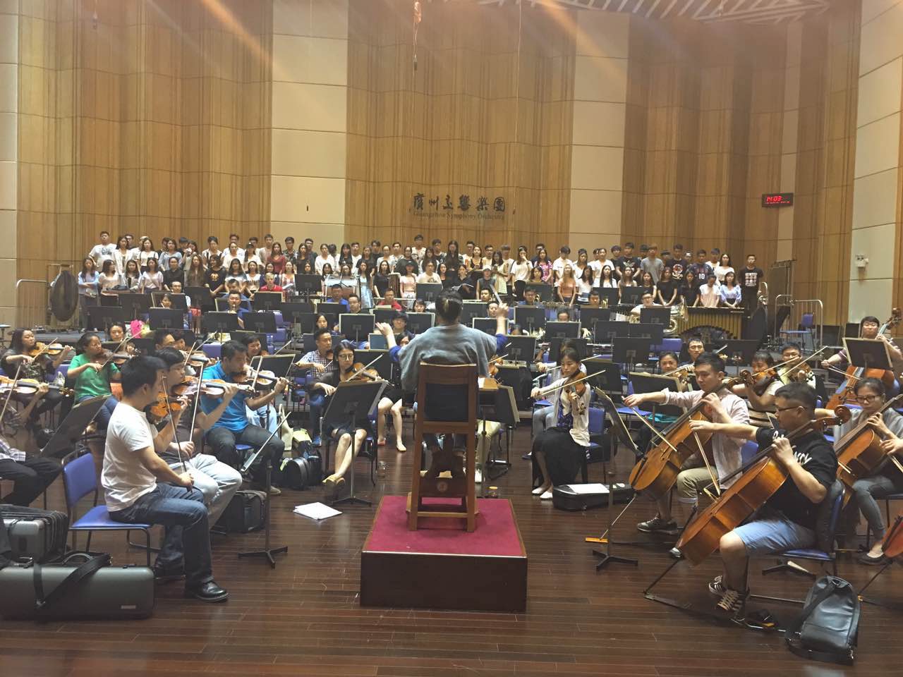 承接任务以来,学院高度重视,在8月底就成立了以学院领导班子为核心的活动筹备小组,学院张斌教授承担合唱排练指导任务。学院办公室和学工办分工明确,组织音乐系三个年级的学生积极筹备并进行训练。排练期间,院长李于昆、院党总支书记朱珍葶、副院长罗金燕、音乐系主任杨健生、党总支副书记张莉、学工办两名辅导员多次来到排练现场,为合唱团全体学生加油鼓劲,肯定了大家的努力和成绩,也希望大家能够坚持不懈,以积极的心态进一步提升排练的效率,出色完成大剧院演出任务。 自8月底开始排练以来,合唱指导张斌教授和音乐系学生全力以赴,使用暑期、周末休息时间加紧排练,力求演出呈现出最佳专业水平。