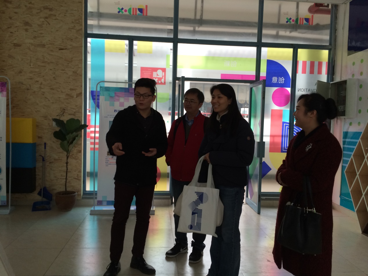 走访“i创业街”学生团队、实验与媒介中心