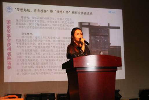 为深入了解身边榜样的事迹,活动邀请国家奖学金代表陈丽帆、优秀学生干部杨珺、专业学习优秀分子谢羽希和贾梦来到现场作经验分享。