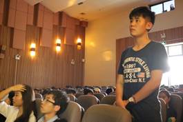 提问环节中,同学们争先提问,与学生代表积极互动,现场不时响起热烈掌声。