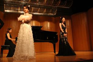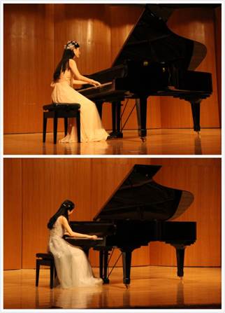 劳嘉琪、刘轶旻进行钢琴演奏