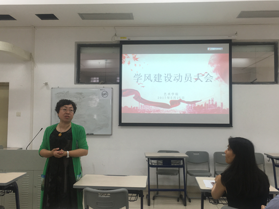 罗金燕副院长从迎接教学评估工作和提升综合素养两个角度强调学风院风建设。她强调,学生骨干应做好榜样示范作用,珍惜学校和学院提供的教育教学实践平台,提升个人综合素养,将我院注重“艺术实践与创新,国际合作与交流,文化创意与设计的办学特色”体现于每位学生的言谈举止和精神面貌之中。