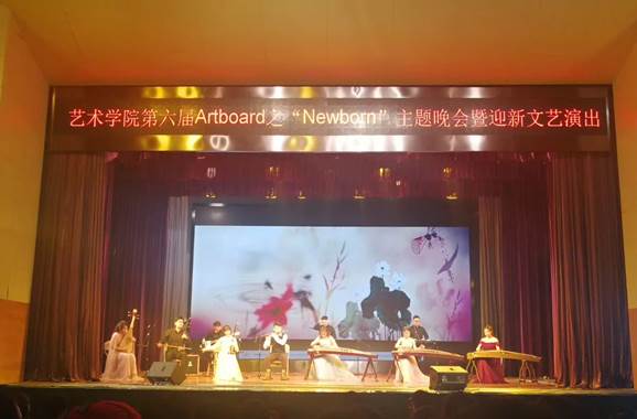 在Randomforest乐队带来的热情火爆的暖场表演《蜕变》《New Divide》中,本次晚会正式拉开了序幕。随后大屏幕带着观众们一起回顾了艺术学院Artboard往届的精彩瞬间。视频紧扣着本次晚会的主题“Newborn”,令人更加期待晚会之后的节目。