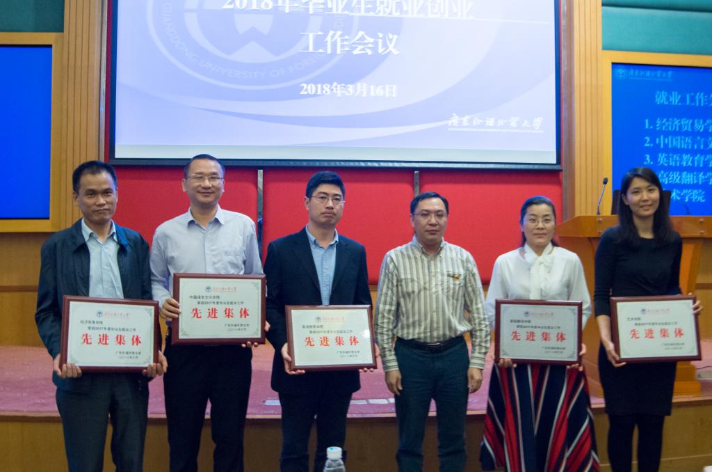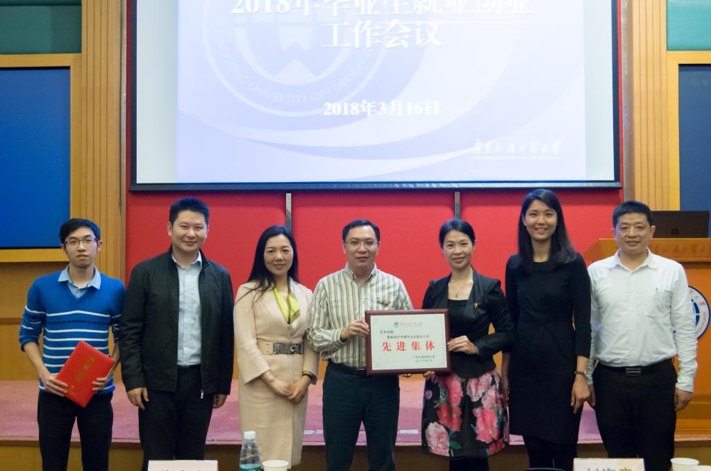 据悉,在2018年1月初学校举办的2017年度毕业生就业工作先进集体和先进个人评选会上,我院以18票的全校第一票数获评“2017年就业工作先进集体”,毕业生辅导员邓煜以24票获评“就业先进个人”。这些荣誉的取得将会进一步激励学院在就创业工作上更加努力,在2018年争取更大的成绩。