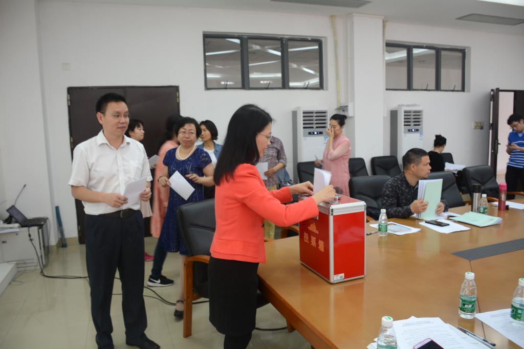 会议按照《中国共产党基层组织选举工作暂行条例》等有关要求进行,首先由李于昆同志宣读党委组织部《关于第四次党代会艺术学院党总支代表候选人预备人选的批复审查批复意见》、介绍获选预备人基本情况。随后,张莉同志宣读选举办法、总监票人、监票人名单。经表决,与会代表一致通过选举办法。党员们认真填写选票,并按照指定的行走路线进行投票。经过差额投票,最终选举出朱珍葶、张莉、李志刚三位同志为校第四次党代会代表。