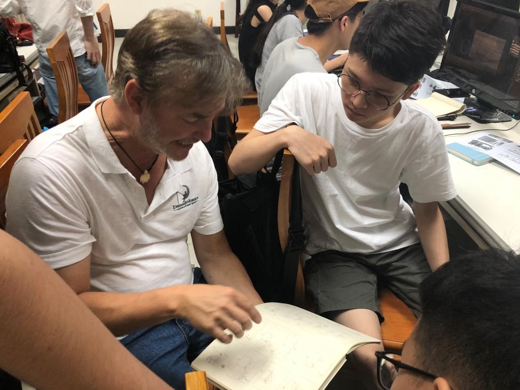 在工作坊的教学过程中,Tim导演分别从个人的学习经历,角色创作,动画原理等方面向在场的同学们分享了自己多年的经验。他强调动画包含许多面向,从脚本的发想到角色设计、场景设计、动作分镜,剪辑、音效等,不只是视觉艺术,也牵涉到文学、音乐,要完成一部电影动画,不可能只靠一个人的力量,团队合作、沟通协调也是动画工作重要的一环。如果同学们未来想投入动画产业,不要只是一味追求技术,因为技术日新月异,很快就被取代了,但是美学涵养与观察力,这些艺术层次的基础是强力的后盾,因此,故事创意和角色设计都必须从现代生活中汲取艺术营养。