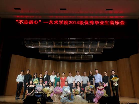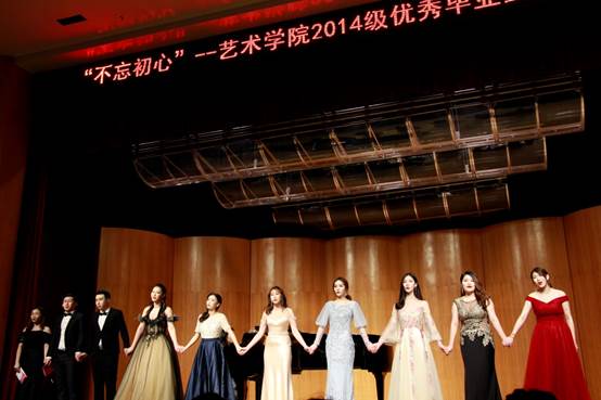 如果说今晚的《我的深情为你守候》中质朴平实的歌词传达着毕业班同学们对学院老师们最深情的守候,那么《不忘初心》里除了有同学们毕业时分对母校的不舍之情,更包含着艺术学院全体教师对他们的谆谆告诫,还有最美好的祝愿:”不忘初心,走向更美好的未来!“毕业音乐会的成功举办,是对同学们为期四年学习的肯定。四年以来,2014级音乐表演专业的同学们通过自身的刻苦钻研和勤奋训练,其专业技能和舞台表演能力均得到了很大的提高,同时他们对音乐、对艺术舞台的追求也更加坚定、执着。毕业对于他们的大学生活来说或许是一个终点,但对于人生来说,却是一个崭新的起点。