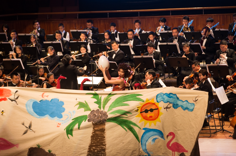 在广州交响乐团演奏“森林狂想曲”音乐中,舞蹈专业学生出演的主人公“兔小白”和它的“小伙伴们”,展现了“兔小白”和小朋友们一起庆祝属于节日的欢快情景,调动了现场气氛。