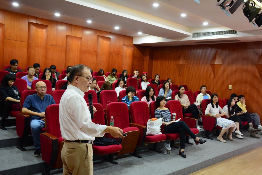 10月11日,我校艺术学院教学质量月艺术讲座在南校区艺术楼四楼观摩厅举行,台湾昆山大学讲座教授、媒体科技与创意产业研究中心创设人李天铎教授担任主讲嘉宾,为艺术学院师生带来了一场主题为”当代艺术:文化经济与品牌效益”的精彩讲座。李天铎教授从印象派世界名画开始,到看似离经叛道的当代艺术,细数拍卖史上的艺术品拍卖事件,解析当代艺术品的经济逻辑。我院党总支副书记张莉出席并主持讲座。