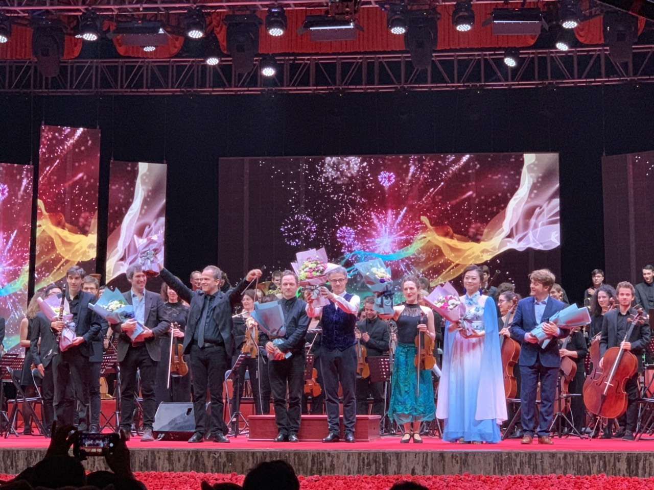 法国巴黎爱乐乐团(欧盟),创建于1982年,由来自欧盟国家高等音乐学院的130名青年音乐家组成。乐团自创建以来已陆续出版了40多首音乐专辑,每年在法国以及世界各地举办数百场音乐会。担任当晚音乐会指挥的是乐团艺术总监,钢琴家、作曲家约翰·法尔诺。