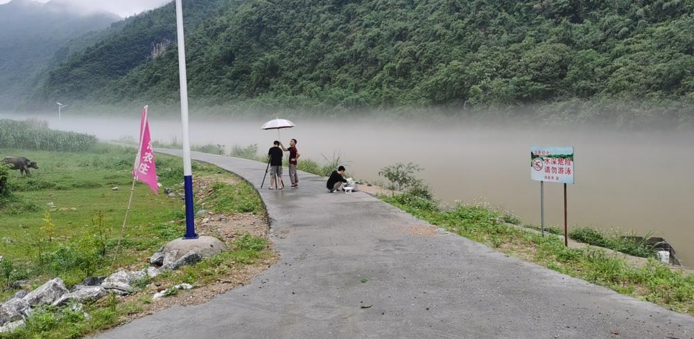 项目组在我校驻村扶贫工作队林安杰、植仲培和梁超军老师的分别带领下,冒着风雨,连续两天在蒲芦洲村头、果树林、青莲河、水电站、农户家、石斛大棚、秤架古驿道等进行了系列拍摄和采访,感受了不一样的蒲芦洲村风貌和改变,项目组成员也被我校驻村干部的敬业精神感动,决心不负使命把项目做得更好。