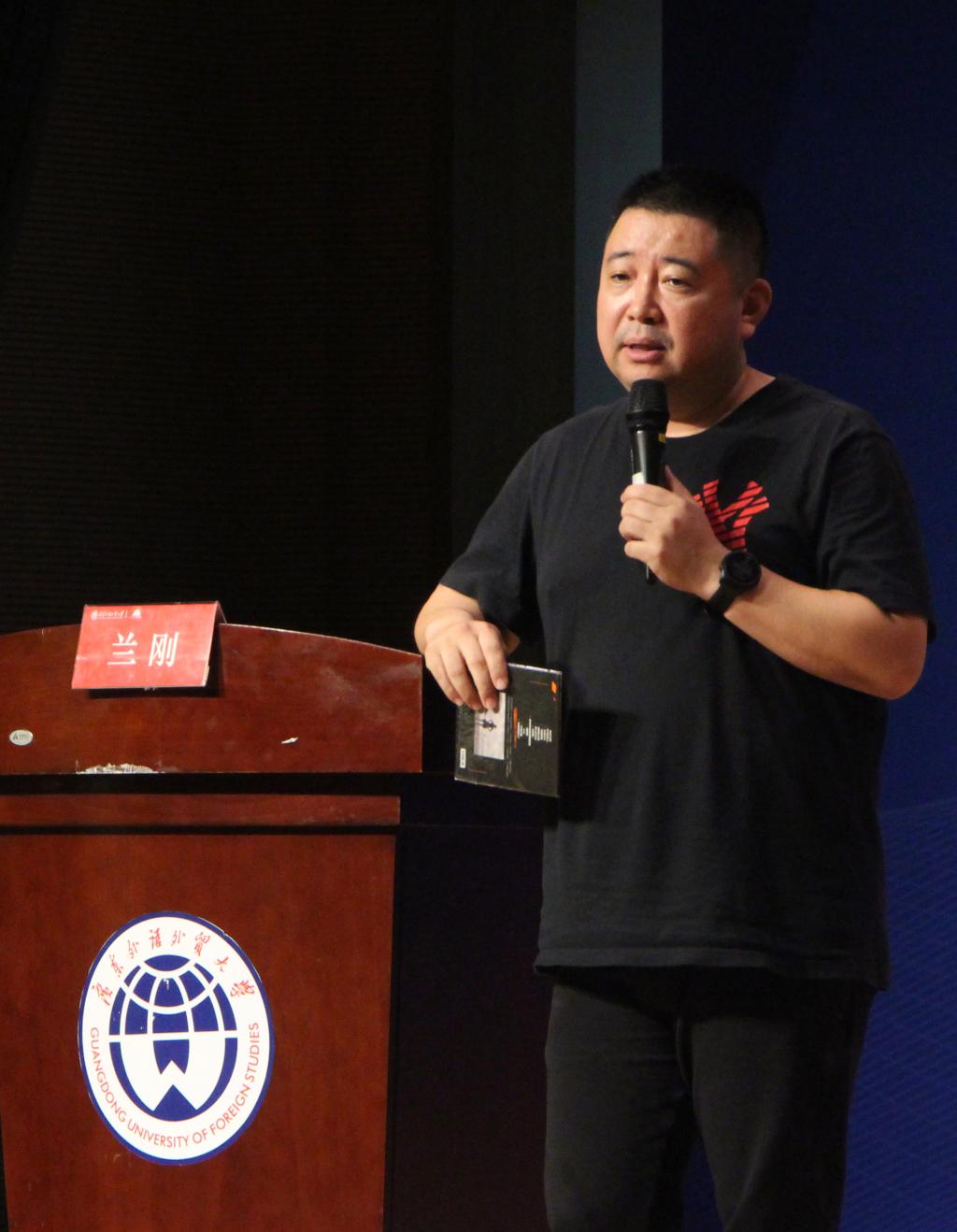 兰刚在报告会中分享了自己的创业故事,如何从年幼时经营碟片开始,到赴穗学习包装唱片,再到成为独立出品人,包装并推广旗下一批又一批成功艺人(如歌曲:新贵妃醉酒、求佛等)。他认为,艺术出品需要主流媒体与互联网相结合,重视团队配合。同时,他着重强调跨界能力的重要性,建议大学生要掌握更多的技能,才能适应社会的需求。