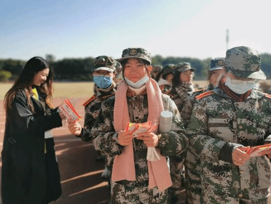 近期天气寒凉,贴心的老师以及朋辈导师们给军训的艺术学子送来“暖宝宝”。林锦松表示,虽然最近天气转凉,我们要注意防寒保暖,也要坚持到底。