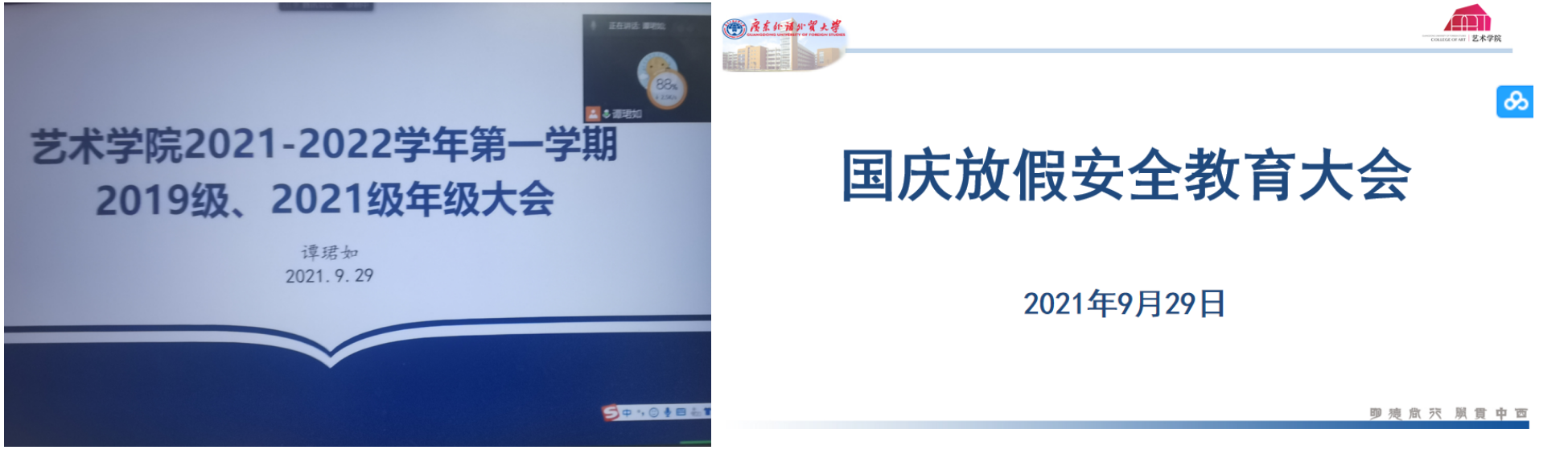 为深入贯彻落实上级和属地疫情防控工作要求,保障学生度过一个安全、愉快的国庆假期,9月29日,艺术学院学工办召开2018-2021级学生年级大会。