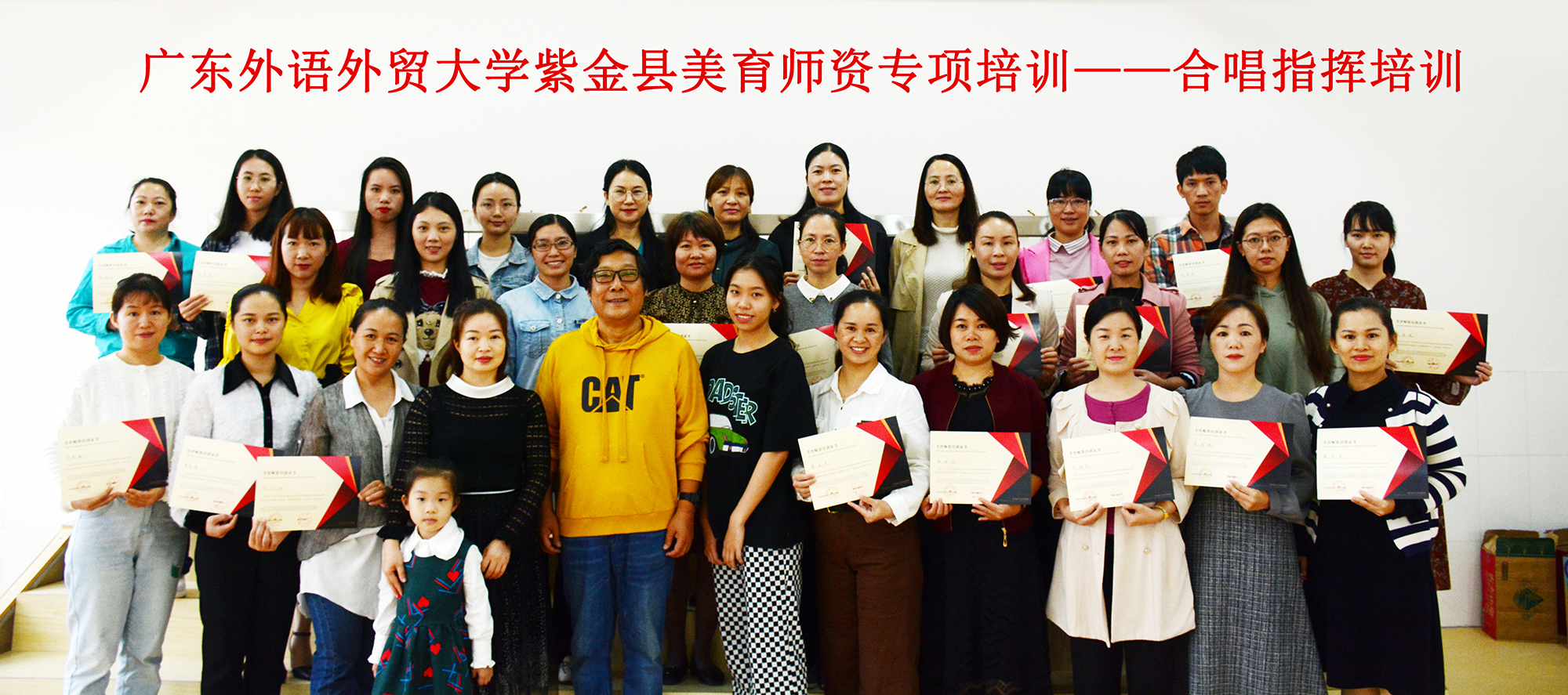 本次培训是粤港澳大湾区的一次美育教育联动活动,因此,培训分为两个专场同时进行——合唱指挥专场和泥塑艺术专场:合唱指挥专场邀请的是国内知名指挥家、广东外语外贸大学艺术学院张彬教授;泥塑艺术专场邀请的是澳门著名的手工艺大师朱帼雄老师。紫金县中小学老师踊跃报名,均想借此次培训来提高自身的教学能力,报名人数远超限额,为了保证理想的培训效果,最终筛选出70位中小学老师参加(其中30人参加合唱指挥培训,40人参加泥塑艺术培训)。艺术学院对参训老师进行严格的考勤管理,并要求其能将所学带入到日常教学中,结合当地文化特色,进行推广。