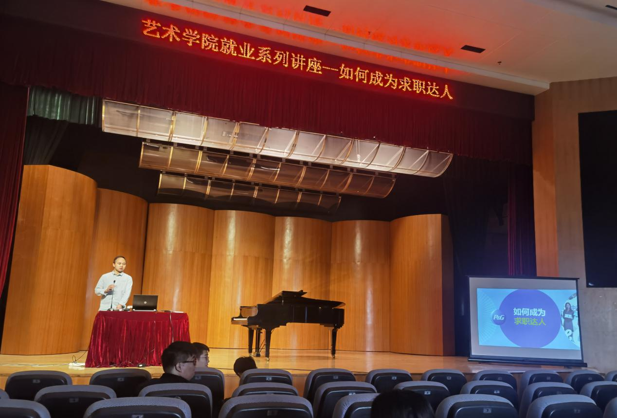 为进一步加强学生就业指导,增强学生就业意识,提高学生自我认知能力,激发学生职业发展与就业的自主性和规划能力,我院于11月17日中午组织举办学生就业指导讲座,邀请了宝洁公司高级项目经理、校友谭振锋担任主讲,学院辅导员谭珺如、林锦松出席,2018级、2019级全体同学参加。