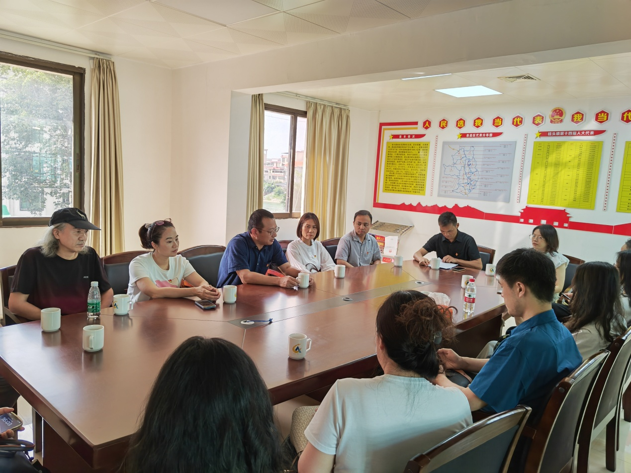 在乳源县桂头镇党群服务中心,学院党委一行与驻村干部开展“学习浙江千万工程案例、浦江经验”座谈交流,驻村工作队员张辉金介绍桂头镇巩固拓展脱贫攻坚成果同乡村振兴有效衔接工作和县、乡、村帮扶工作开展情况。党委书记卢海清为大家上了一堂“服务乡村振兴”微党课,激发党员为乡村振兴聚势赋能。他指出,“浦江经验”是习近平总书记在浙江工作期间亲自倡导并带头下访接访群众形成的好经验好做法,是改善干群关系、加强基层治理的生动实践,要深刻领悟习近平总书记关于浙江“千万工程”所蕴含的理念和方法,党的二十大将乡村振兴作为加快构建新发展格局、着力推动高质量发展的战略性任务。2022年,浙江省印发的《关于开展“艺术乡建”助力共同富裕的指导意见》,给予“艺术乡建”更加明确的纲领和方案。艺术在绿化美化乡村、打造人居环境建设中的角色日益突出。截至目前,艺术学院曾在坪田村绘制墙绘,加入当地粮仓改造规划行列,是践行“艺术乡建”的有益尝试,接下来将组织更多的力量加入艺术赋能乡村振兴实际行动中来,让艺术的力量融入乡村建设“内核”。党委副书记李亚静提到驻村干部站稳人民立场,惠民生暖民心的为民情怀,勇挑重担造福百姓的精神值得大家学习。