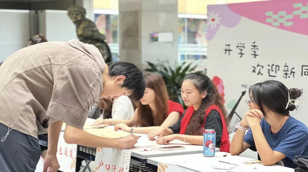 学工团队在艺术楼大厅和生活区设置迎新报道点,由引导组、机动组、新闻组、注册接待组、团组织关系转接组构成的志愿者们热情地迎接新同学的到来。值得一提的是,学院安排志愿者一对一全流程完成新生入学服务,校园内遍布我院志愿者冒着大雨服务的身影。学院在报道点和生活区多个重要区域放置了新生拍照打卡的KT板、手举牌和指引牌等等,设置家长休息交流区,切实将迎新工作落实到细节之处。