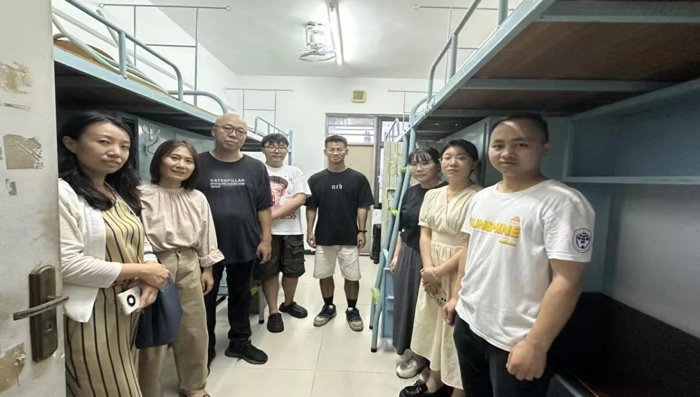 晚上,为进一步做好新生关怀工作,及时关注新生动态,学院党委副书记李亚静、副院长关雪仑、研办主任肖楠楠老师、辅导员林锦松、彭维英、李韵琪与朋导团队走访本科和首届研究生新生宿舍,详细了解宿舍设施设备,倾听学生与家长的心声,勉励新生要适应新环境,有困难向学院求助,以饱满的精神状态投入大学生活中。