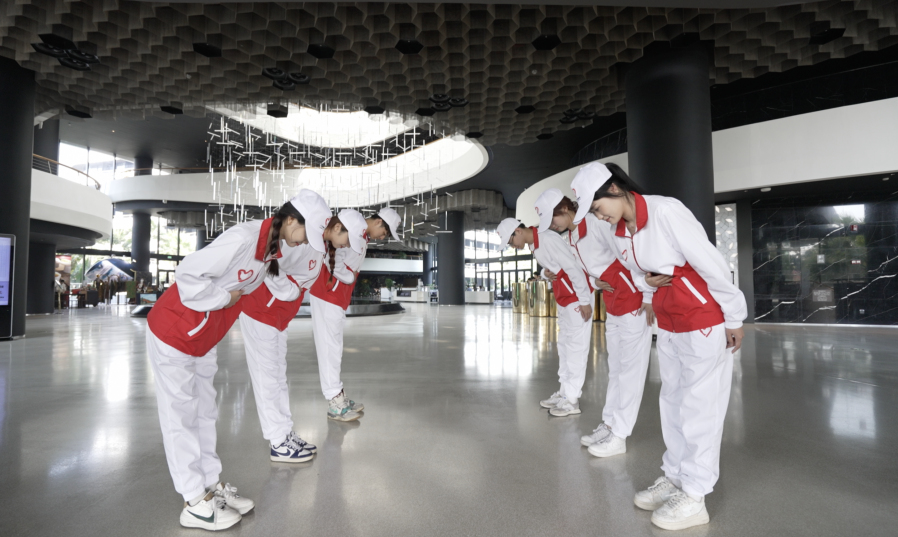 为确保拍摄顺利进展,新华社的老师们为学生志愿者开展业务培训,指导志愿者服务时应注意的服务礼仪和技能。在拍摄过程中,大家精神焕发地身着白色志愿者服装,体现着为他人服务的精神,充分展示我院学生志愿者极佳的形象气质和饱满的服务热情。
