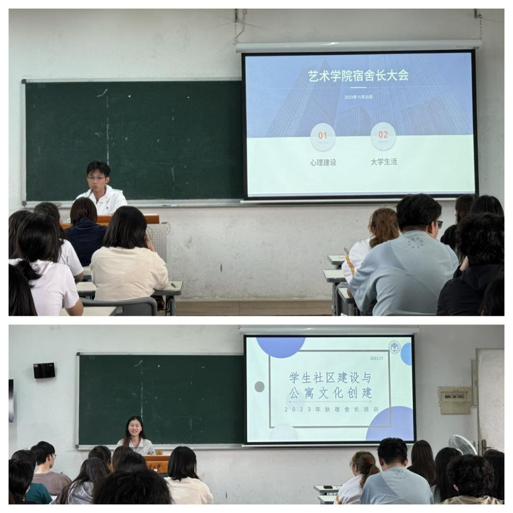 为进一步提升学生社区治理能力与水平,增进学生自我教育、自我管理、自我服务和自我监督。11月30日与12月1日,艺术学院开展两场宿舍长培训大会,学院党委副书记李亚静出席大会,邀请保卫部张雪老师与门诊部陆柳甫老师进行相关培训。大会由辅导员范文韬主持。