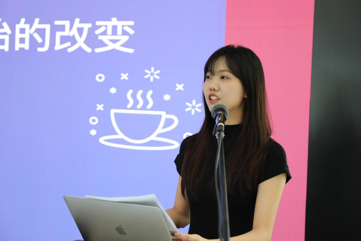 设计专业余祉慧同学的分享主题是“不完全二次元——我对二次元的认识”。她向大家介绍了“二次元”这一日益庞大且极具创新生命力的群体,结合本专业知识,分析和整理了“二次元”文化是如何在趣缘群体、数字技术、国家政策以及市场经济等多重推动下在中国本土传播和发展,解读了二次元文化环境中的负面和正面情绪。她还引用了人民日报对于二次元的评论“既然二次元文化能懂得年轻人,社会又何不能从中借鉴,去悉心体察年轻人的冷暖悲欢呢?须知,懂得年轻人,才能懂得时代,懂得未来”,阐述了应该从二次元文化的发生发展中获得启示,以促进设计文化传播的观点。