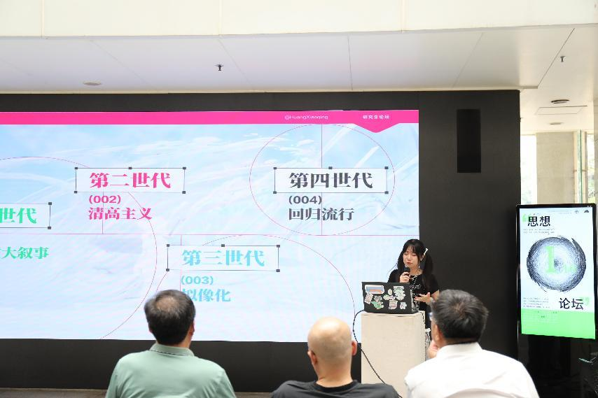 汪凌老师作为开讲嘉宾,介绍了黄晓晴的研究主题,她指出,在代际差异加剧的当下,教育需要包容新生亚文化的力量。师生、亲子间因价值观差异、审美偏差形成的认知鸿沟日益显著,经典文化传统正遭遇后现代语境解构,催生出大量源自网络碎片的亚文化现象。这些文化虽游离于主流视野之外,却已形成庞大精神世界与文化产业链。她主张教育者应以开放心态直面这些现象,将其置于特定社会背景中理解价值。她呼吁师生协力探索教育新路径,并最终点明——世界永远属于在变革中把握方向的年轻人。