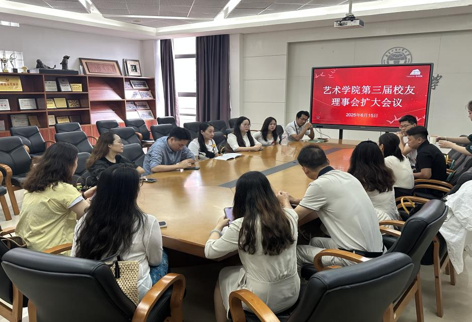 2025年6月15日,值此艺术学院喜迎建院20周年华诞之际,第三届校友理事会扩大会议在艺术楼A301会议室圆满举行。学院党委副书记李亚静、辅导员彭维英、第三届校友理事会执行会长刘欣婷、理事会成员以及校友联络员代表齐聚一堂,共叙情谊,共谋校友工作与学院发展大计。
