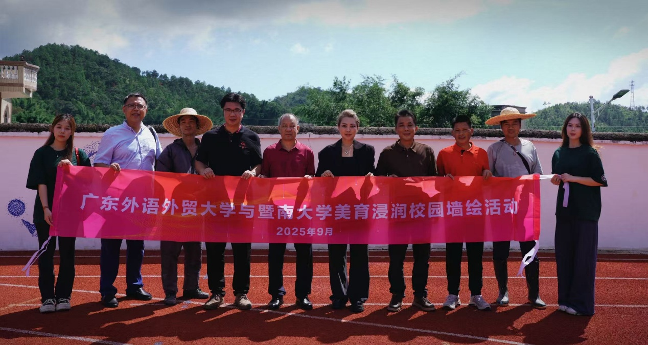 为深入推动广东省2025年美育浸润行动,促进粤东西北地区乡村学校美育水平提升,广东外语外贸大学与暨南大学近日携手在河源市紫金县凤安镇凤安中学成功举办校园墙绘美化活动。此次活动是两所高校首次联合开展美育浸润行动,并与广东外语外贸大学王凯宏美育名师工作共同实施此次活动,旨在以艺术实践赋能乡村教育,美化校园环境。