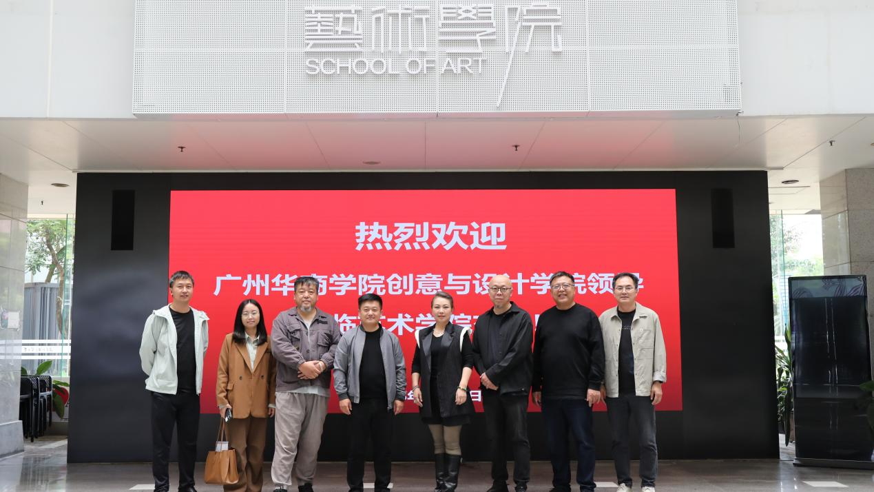 为深化合作,加强艺术设计领域的经验共享与学术交流,10月23日下午,广州华商学院创意与设计学院杨磊院长、吕华斌教授等一行3人来我院开展调研交流活动。学院党委书记卢海清、院长王凯宏、副院长关雪仑、公共艺术教学部主任白波和艺术设计系副主任沈业接待来访嘉宾,双方围绕学科建设、美育教育建设和教学实践等话题展开深入探讨。