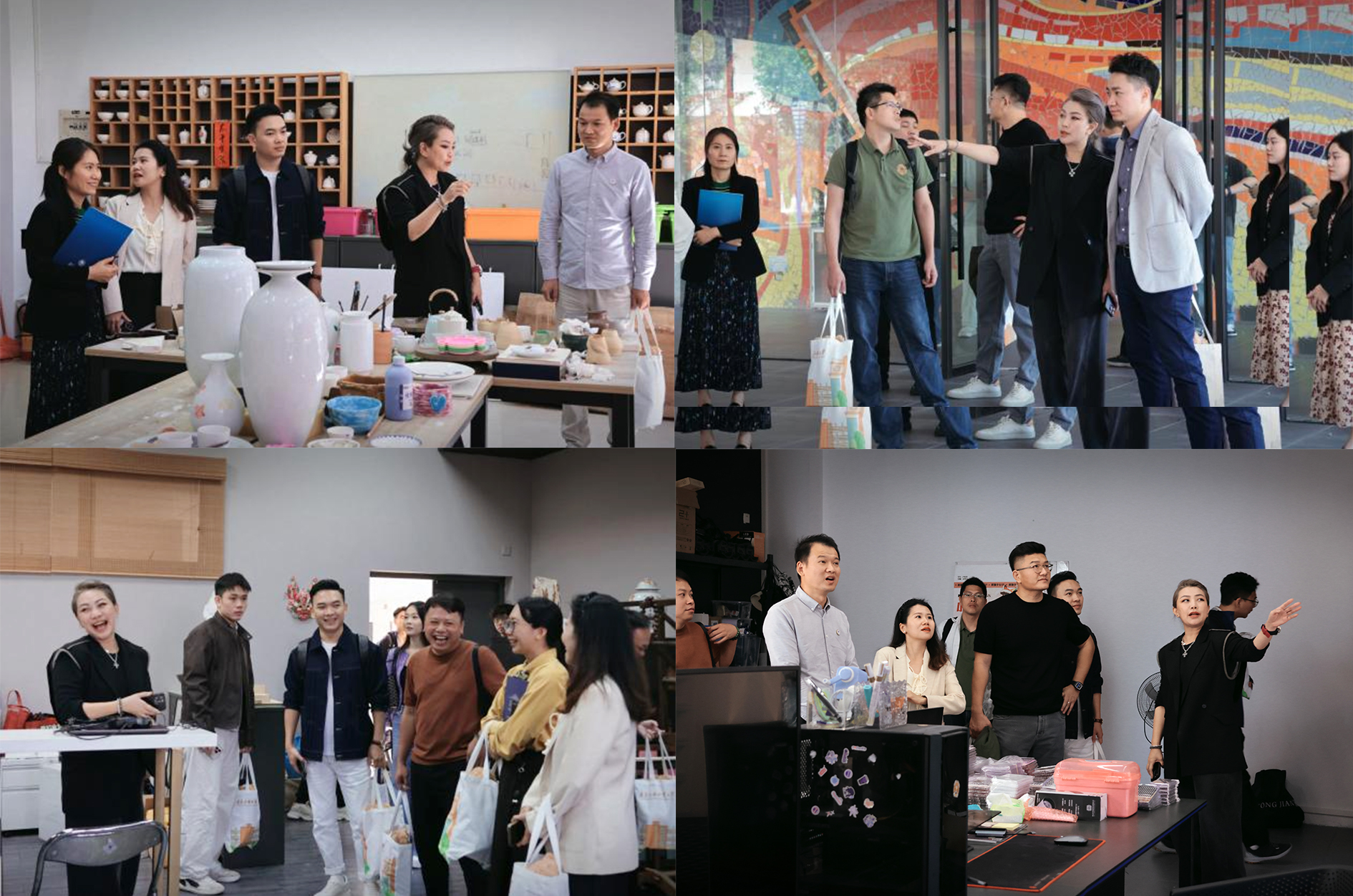 会后,校友和师生们参观了学院的美育、皮具、陶艺及新媒体等特色工作室,并在大厅合影留念,定格下这一珍贵的瞬间。新一届理事会的成立,标志着艺术学院校友工作进入新的阶段,必将为学院与校友的共同发展注入新的活力。