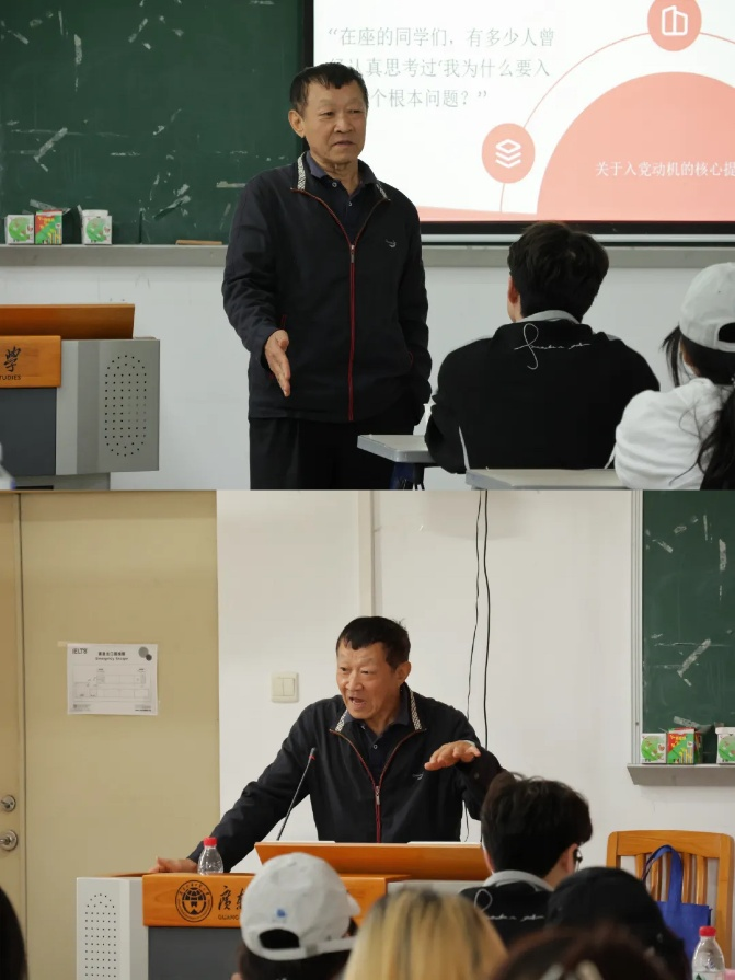 许国彬教授围绕“入党初心和时代使命”党课专题,结合自身多年工作经历与切身感悟,从五个维度引导学员回溯入党初心,共产党员坚定理想信念的根本政治要求,同时勉励学生们要自觉将艺术追求与党和国家发展需要紧密结合,以艺术传播正能量、弘扬主旋律,在创作中践行中国共产党党员的初心使命。党课高屋建瓴、内涵丰富,围绕时代发展及当前学生的思想实际和成长困惑,既有宏大的时代叙事,又展现了长辈对后辈的关爱与引领,对学生们理解时代使命和责任担当有很强的指导意义。