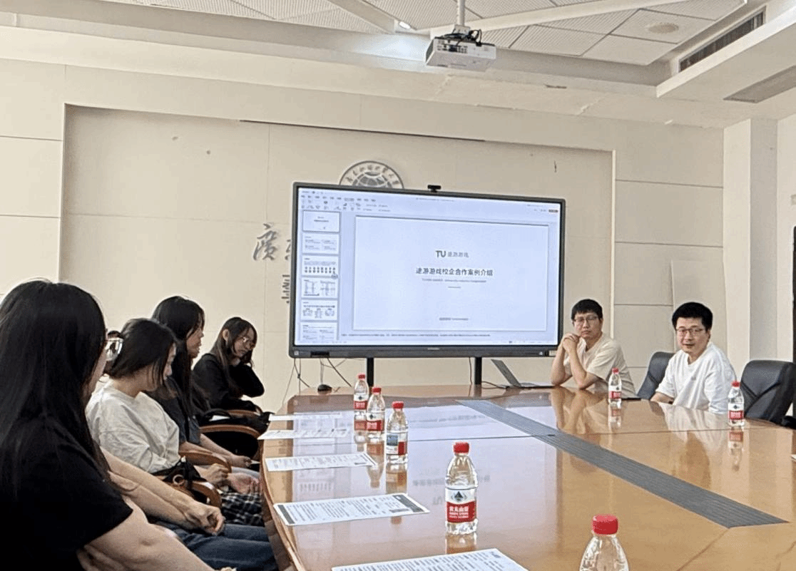 为深化产教融合,搭建校企人才对接桥梁,3月13日,途游游戏公司一行到访广东外语外贸大学艺术学院,开展校企合作洽谈暨毕业生交流活动。途游公司校招负责人吴凡、游戏发行中心皮云尊、美术负责人李婉,与艺术学院副院长关雪仑、党委副书记李亚静、辅导员彭维英及毕业班学生代表共同参与本次交流,共商合作机遇,共谋发展蓝图。